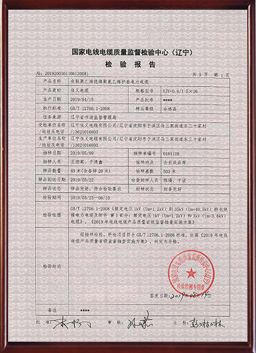 YJV-5x16抽檢報告